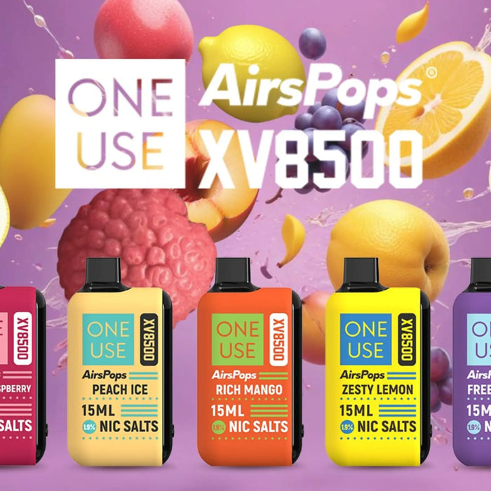 Experience an unparalleled vaping sensation with the AirsPops ONE USE XV 15ml Disposable Vape - 5%. With its impressive 15ml e-liquid capacity, this device delivers up to 8,500 puffs, making it perfect for extended use without the need for recharging or refilling.