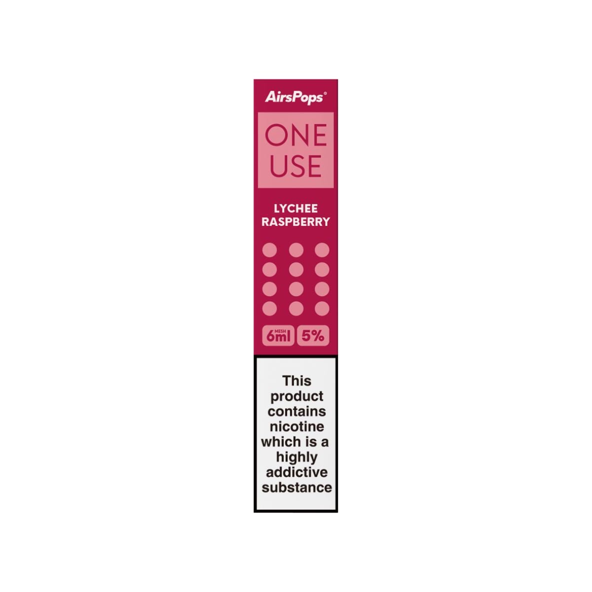 Explore the full range: For a smaller, more portable option, try the AirsPops ONE USE 3ml Disposable Vape. Need more? The AirsPops ONE USE XV 15ml Disposable Vape offers 2.5 times more e-liquid and is rechargeable!